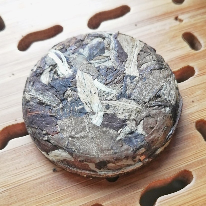 This tea was packed in it’s little air tight bag in my tea suitcase (yes a had a whole suitcase + boxes of tea when I moved) and i’ll be honest I forgot about it, until my fiance and I were getting read to move out into our first home together and I stumbled upon this cake. Once we started unpacking at the new house, I was instantly reminded that I had it and shocked that at that point it had been aging for around 4 years. So I decided to break it out of it’s bag and do a session with it to celebrate us moving and I’m so glad I did because the ageing had done wonderful things to this tea which I’ll get further into as this post goes on.